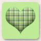 Retro green plaid puffy heart St Patrick Beverage Coaster