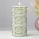 Add a splash of mid-century modern Palm Springs everywhere you go with this Retro Green Trellis pattern pillar candle. It was inspired by vintage concrete breeze blocks. The deconstructed take on 1950s architecture will give an instant designer feel to everyday life.