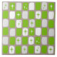 This Retro Green and White Starbursts Ceramic Tile is so adorably space age you won’t be able to contain your enthusiasm. And, why would you want to? This 1960’s mid century modern inspired design features a dark heather grey background and rows of perfectly imperfect rectangles in cheery green, white, and dove grey. Kitschy white and green starbursts are placed in randomly selected rectangles. This mod pattern will make you feel like you jumped in a time machine and set the dial for irresistibly vintage!