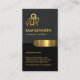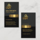 Overleaf, the same design theme is used with the gold logo at the top followed by the business name, contact details and slogan option.