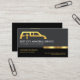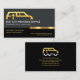 A retro grey and black columnar design is accentuated by a faux gold stripe tab. At the top of the card is a gold memorial car design that houses your business name and a slogan option to publicize your services. ; You can change the caption remarks to the slogan to suit your own service needs. Below the car design, in the black layer, lies your prestigious name, the job title and the contact details in the opposite corner. Lettering here are in faux gold.