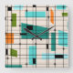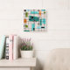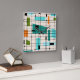 This Retro Grid and Starbursts Acrylic Wall Clock is where vintage style meets modern day. It features a cream colored background with kitschy, off kilter squares and rectangles in teal, turquoise, This light blue, orange, and avocado green. The whimsical blocks of color are overlayed are worked into some of the grid intersections. There are also black rectangles with black vertical and horizontal lines forming a grid pattern. Black starburst designs and squares placed sporadically throughout this mid century modern tapestry of color. Grab your go-go boots and bell-bottoms and enjoy this throwback to the 1960s.