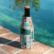 This Retro Grid and Starbursts Bottle Cooler is where vintage style meets modern day. It features a cream colored background with kitschy, off kilter squares and rectangles in teal, turquoise, This light blue, orange, and avocado green. The whimsical blocks of color are overlayed are worked into some of the grid intersections. There are also black rectangles with black vertical and horizontal lines forming a grid pattern. Black starburst designs and squares placed sporadically throughout this mid century modern tapestry of color. Grab your go-go boots and bell-bottoms and enjoy this throwback to the 1960s.