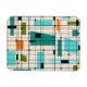 This Retro Grid and Starbursts Flexible Magnet is where vintage style meets modern day. It features a cream colored background with kitschy, off kilter squares and rectangles in teal, turquoise, This light blue, orange, and avocado green. The whimsical blocks of color are overlayed are worked into some of the grid intersections. There are also black rectangles with black vertical and horizontal lines forming a grid pattern. Black starburst designs and squares placed sporadically throughout this mid century modern tapestry of color. Grab your go-go boots and bell-bottoms and enjoy this throwback to the 1960s.
