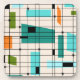 These Retro Grid and Starbursts Hard Plastic Coasters are where vintage style meets modern day. It features a cream colored background with kitschy, off kilter squares and rectangles in teal, turquoise, This light blue, orange, and avocado green. The whimsical blocks of color are overlayed are worked into some of the grid intersections. There are also black rectangles with black vertical and horizontal lines forming a grid pattern. Black starburst designs and squares placed sporadically throughout this mid century modern tapestry of color. Grab your go-go boots and bell-bottoms and enjoy this throwback to the 1960s.