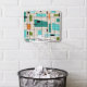 This Retro Grid and Starbursts Mini Basketball Hoop is where vintage style meets modern day. It features a cream colored background with kitschy, off kilter squares and rectangles in teal, turquoise, This light blue, orange, and avocado green. The whimsical blocks of color are overlayed are worked into some of the grid intersections. There are also black rectangles with black vertical and horizontal lines forming a grid pattern. Black starburst designs and squares placed sporadically throughout this mid century modern tapestry of color. Grab your go-go boots and bell-bottoms and enjoy this throwback to the 1960s.