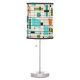 This Retro Grid and Starbursts Table Lamp is where vintage style meets modern day. It features a cream colored background with kitschy, off kilter squares and rectangles in teal, turquoise, This light blue, orange, and avocado green. The whimsical blocks of color are overlayed are worked into some of the grid intersections. There are also black rectangles with black vertical and horizontal lines forming a grid pattern. Black starburst designs and squares placed sporadically throughout this mid century modern tapestry of color. Grab your go-go boots and bell-bottoms and enjoy this throwback to the 1960s.