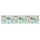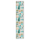 This Retro Grid and Starbursts Table Runner is where vintage style meets modern day. It features a cream colored background with kitschy, off kilter squares and rectangles in teal, turquoise, This light blue, orange, and avocado green. The whimsical blocks of color are overlayed are worked into some of the grid intersections. There are also black rectangles with black vertical and horizontal lines forming a grid pattern. Black starburst designs and squares placed sporadically throughout this mid century modern tapestry of color. Grab your go-go boots and bell-bottoms and enjoy this throwback to the 1960s.
