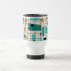 This Retro Grid and Starbursts Travel Mug is where vintage style meets modern day. It features a cream colored background with kitschy, off kilter squares and rectangles in teal, turquoise, This light blue, orange, and avocado green. The whimsical blocks of color are overlayed are worked into some of the grid intersections. There are also black rectangles with black vertical and horizontal lines forming a grid pattern. Black starburst designs and squares placed sporadically throughout this mid century modern tapestry of color. Grab your go-go boots and bell-bottoms and enjoy this throwback to the 1960s.