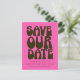 Retro Groovy 70s Bold Hot Pink Green Save The Date Postcard
