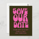 Retro Groovy 70s Hot Pink and Dark Green Save the Date Postcard