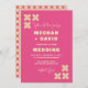 Retro Groovy 70s Pattern Pink Beige Wedding Invitation