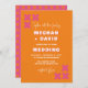 Retro Groovy 70s Pattern Pink Orange Wedding Invitation