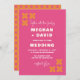 Retro Groovy 70s Pattern Pink Orange Wedding Invitation