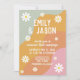 Yes, you can print on the back of your invitation for free! Most designs already have a corresponding design on the back that can be personalized using the Design Tool and going to Layers. This is a great way to communicate more information or further personalize your Retro Groovy 70s Wedding Invitation. The option is really up to you.