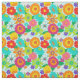 Bold retro floral patterned fabric printed with colorful groovy hippie flowers