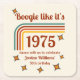 Get ready to groove with this retro-inspired 50th birthday coaster! The front features a wavy, colorful line in a nostalgic 70s palette with the bold phrase "Let's boogie like it's" on top and the year of birth tucked beneath. All text is fully customizable — from the name and party details to colors and fonts — making it perfect for a totally personalized celebration.