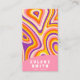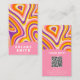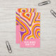A Vintage retro Psychedelic colorful pink liquid business card. That features a handmade groovy pattern boho abstract wavy shapes lines .In elegant chic orange and pink and beige and purple . Modern yet it has nostalgic seventies vibes and vibrant warm colors and groovy fonts. With customizable name and profession and QR code.