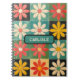 Keep track of all your great ideas with this spiral notebook. It features a retro box pattern featuring daisy flowers in pink, yellow, and white on dark gray and turquoise on the cover with space for a name or other text. Makes a great personalized gift for someone who loves retro flowers and daisies.
