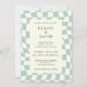 Retro Groovy Green Checkerboard Wedding Invitation
