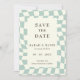 Retro Groovy Green Checkerboard Wedding Save The Date