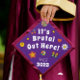 My Retro Groovy It's Brutal Out Here Graduation Cap Topper is perfect for your grads graduation ceremony. Let your graduate stand out in the crowd with this bold retro cap topper! You can change the copy if you want a custom design. Need a custom color just send me a message I am happy to put up something custom just for you!