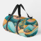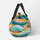 Travel in style with this groovy, retro duffel bag. The bag displays a flowing, modern design in teal, peach and yellow, the lines and curves forming an abstract landscape. Customizable with your initial as a stylish monogram, this duffel is perfect for weekends away or trips to the gym. Combining a groovy vibe with contemporary style, this eye-catching bag adds a nostalgic yet modern twist to your look.