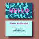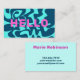 Retro Groovy Navy Blue Aqua Pink Hello Business Card