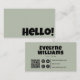 Retro Groovy Neutral Sage Green QR Code Hello Boho Business Card