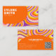Retro Groovy Orange QR Code 70s Psychedelic Unique Business Card