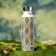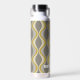 A mod patterned gold bottle with a place for a simple monogram. The taupe, grey and gold design has a groovy organic wave pattern. A minimal look in subtle colors with a simple serif font for a monogram.