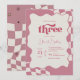 Retro Groovy Pink Checkered Three 3rd Birthday Inv Invitation
