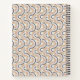 This personalized journal features an all-over retro rainbow arc pattern in mustard, terracotta, navy, and mauve on a warm cream background, with a centered photo placeholder and customizable couple names on a soft mauve label. The bold, 70s-mod geometric design brings a playful, earthy energy that feels current and personality-forward. A fun engagement gift, bridal shower present, or wedding planning journal for the couple with a retro aesthetic sensibility.