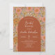 Retro groovy turquoise boho arch orange pink invitation