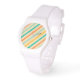 I only have one complaint. I ordered the watch with clear case and strap, and what was sent was white case and strap. I'm going to keep it because 1) it looks very nice in white, and 2) it would take too long to get a replacement made and sent in time for my occasion. Aside from the mix up with the color, the watch does look very good in white. The purple dial is actually sparkly which did not show in the online images. That was a nice surprise. If you like Swatch watches this is very similar to those. It's 33.6mm in diameter, 10.5mm thick, and 40.6mm lug to lug. Stainless steel case back says 3ATM/30m WR, so no swimming or showering or submerging this one. If you like Woodstock, this is a great choice.
