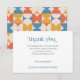 Thank your family, friend and guest after the wedding with these vintage inspired wedding thank you card! Card reverse has an eye-catching pattern inspired by the vibrant spirit of the 1970s and 1960s combining half circles and ogee scallops. The pattern is elegantly crafted in a palette of blue, orange, and yellow, set against a classic ecru background