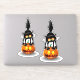 Step right into the classic trick-or-treat spirit with this totally nostalgic design! This retro Halloween sticker features an adorably spooked black kitty with huge yellow eyes and a puffed-up tail, balancing right on top of a glowing jack-o'-lantern. The bright orange pumpkin is carved with a goofy, wide-mouthed grin that perfectly matches the cat's surprised cartoon face. It is a super fun, throwback look that brings back the simple joy of old-school autumn nights. If you love that charming, vintage spooky vibe, this playful little duo is the absolute perfect way to dress up your everyday items and spread some festive, lighthearted cheer!