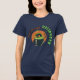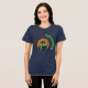 Celebrate Halloween with this cat design and simple, fun typography ' feline like halloween ' puns. This women's blue graphic t-shirt has a retro clipart design of a black cat making a green potion in a cauldron over an orange halo. The colour scheme can be modified.