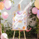 This birthday party yard sign features a colorful pastel halloween themed design that perfectly capture the excitement and fun of a 1st birthday celebration. It features a retro-inspired aesthetic with a disco ball and halloween characters on a checkered pattern.