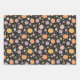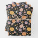 Retro Halloween Pumpkins and Flowers Pattern Wrapping Paper Sheets
