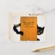 Retro Halloween black cat postcard. High quality, restored vintage image.