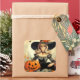 This sticker has a retro looking illustration of a pretty witch wearing a big witch hate with her black cat and a jack-'o-lantern. There are some fall leaves and bats in the background and it has a autumn, Halloween in the 1960s or 1970s vibe. This retro Halloween sticker is perfect to add to a Halloween gift, a Halloween card or anything else you might put a sticker on!