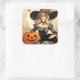 Retro Halloween Witch and Black Cat Spooky Square Sticker