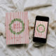 Retro Hand Drawn Green Red Christmas Wreath Holiday Card