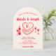 Retro Hand Drawn Red Cake Modern Arched Wedding Invitation
