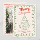 Retro Hand Drawn Red Green Vintage Christmas Tree Holiday Card
