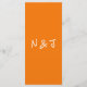 A colorful retro funky modern bright orange wedding dinner menu. Which features chic template design of boho vintage bright orange background and white typography and hand written menu in white. And hand drawn champagne glasses . With monogram in the back. Perfect and matching with the whole suite.