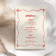 Retro Handwritten Whimsical Red Wedding Menu Invitation