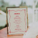 The handwritten design on the menu exudes charm and personality, inviting your guests to savor the culinary delights of your special day. The whimsical red color palette adds a pop of color and sets the tone for a fun and festive celebration.