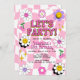Retro Happy Smile Face Pink Checkered Birthday Invitation